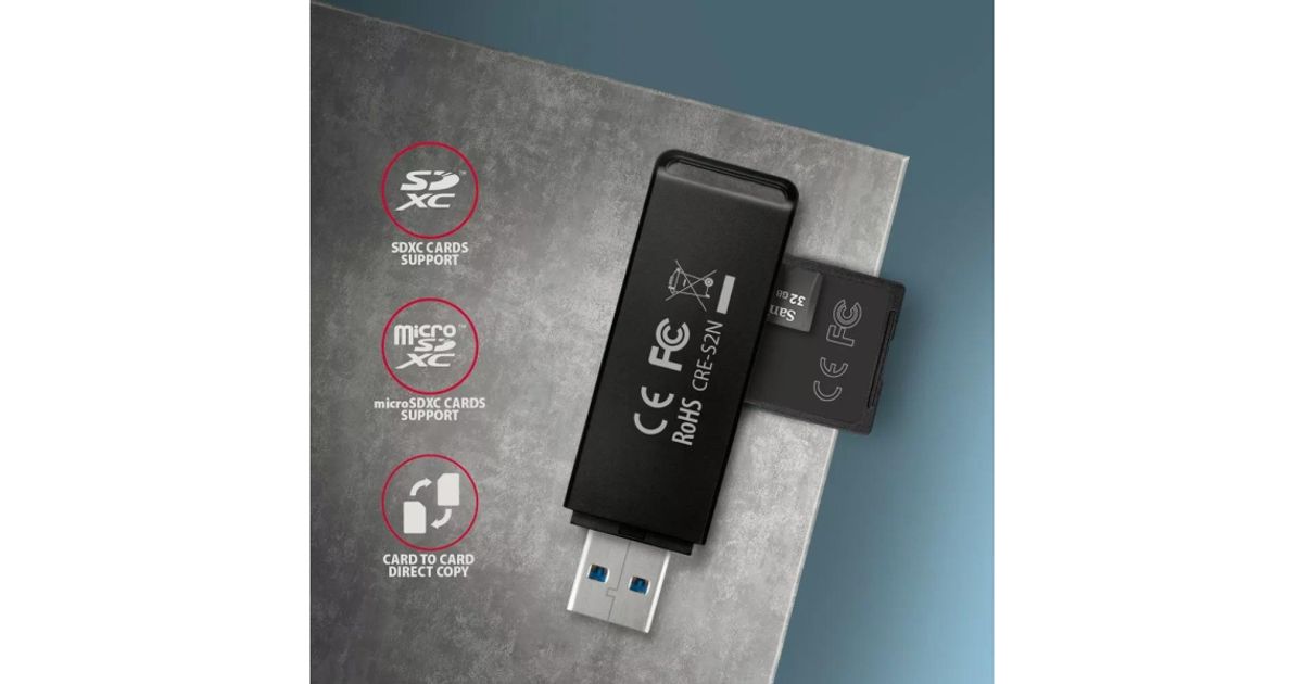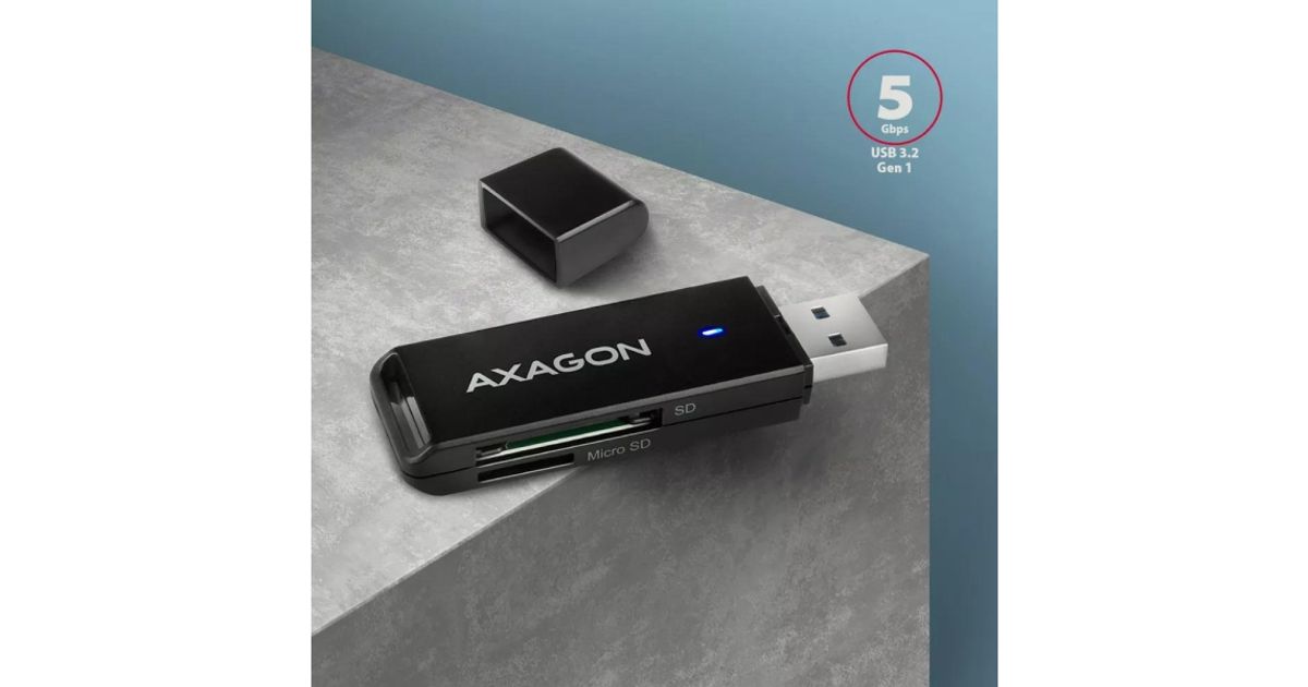 Axagon CRE-S2N, USB-A 3.2 SUPERSPEED 2-slot & lun SD/microSD, UHS-I
