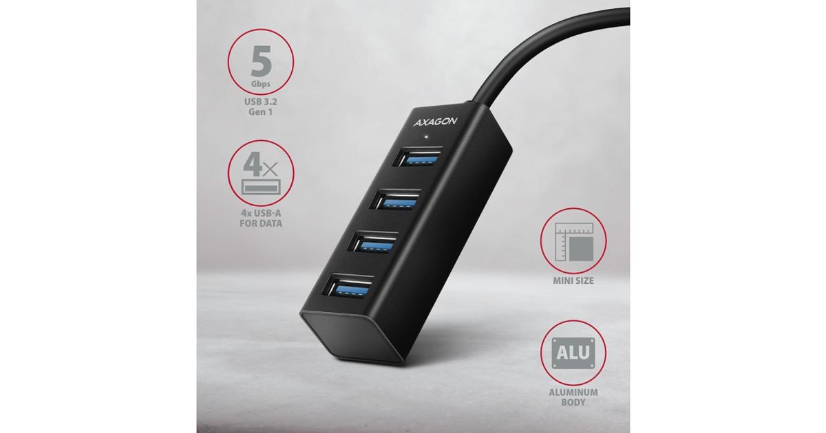 Axagon HUE-M1AL, 4x USB 3.2 Gen 1 Mini Hub, metal, USB-a 1.2m