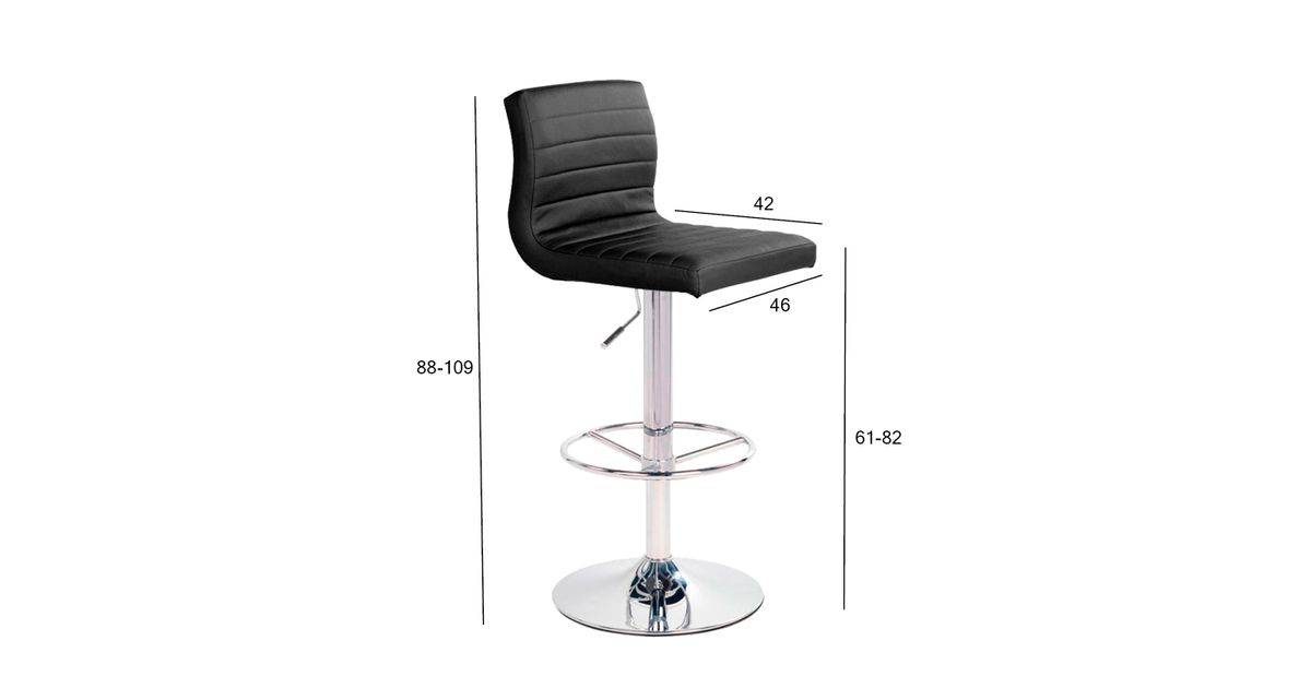 Kattematerjal: iste: kunstnahk, värvus: must. Raami värvus: kroomitud. Mehhanism ja seadistused: istme kõrgus reguleeritav gaasamordi abil. Mõõtmed: istme kõrgus 88-109cm, istme sügavus 42cm, istme laius 46cm. Kaalupiirang 100kg.