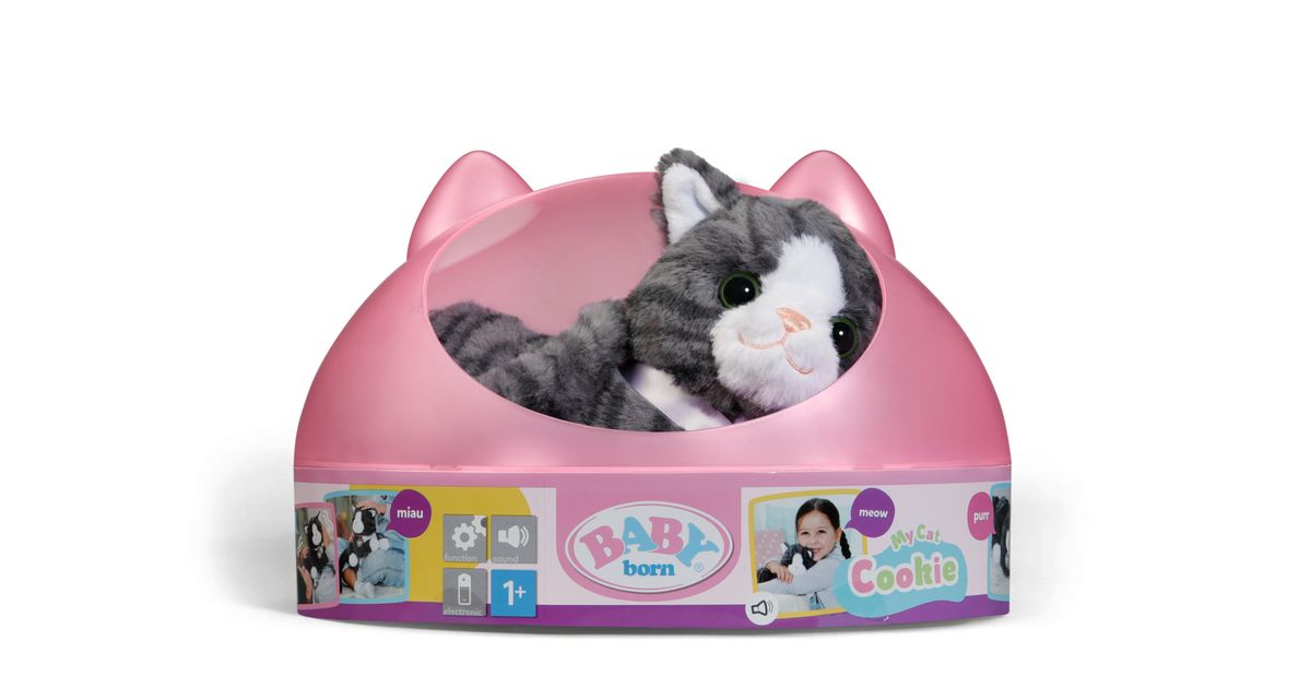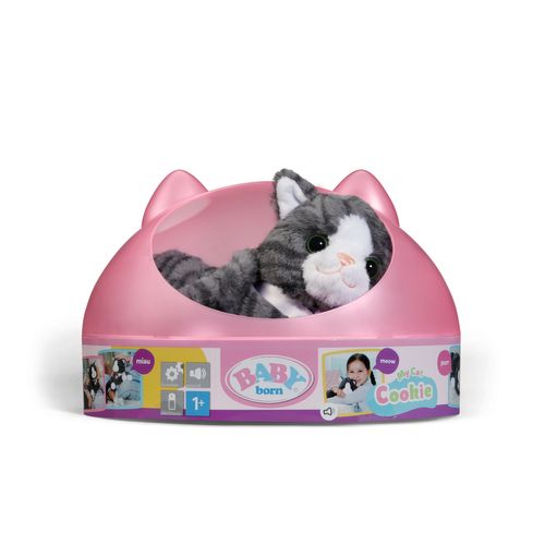 Tutvu Baby Borni uue sõbraga - kass Cookie! Ta on peaaegu nagu päris kass! Silita teda ja ta hakkab rõõmsalt nurruma ja end väristama. Komplektis on armsa trükisega kaelarihm ja karbiga Cookie jaoks.