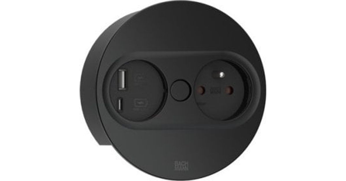 Bachmann TWIST 2 Metallische Abdeckscheibe rund, weiß matt, ähnlich RAL 9010 30GE seidenmatt, 1xUTE Frankreich Steckdose schwarz mit erhöhtem Berührungsschutz, 1xUSB A/C 22W Charge