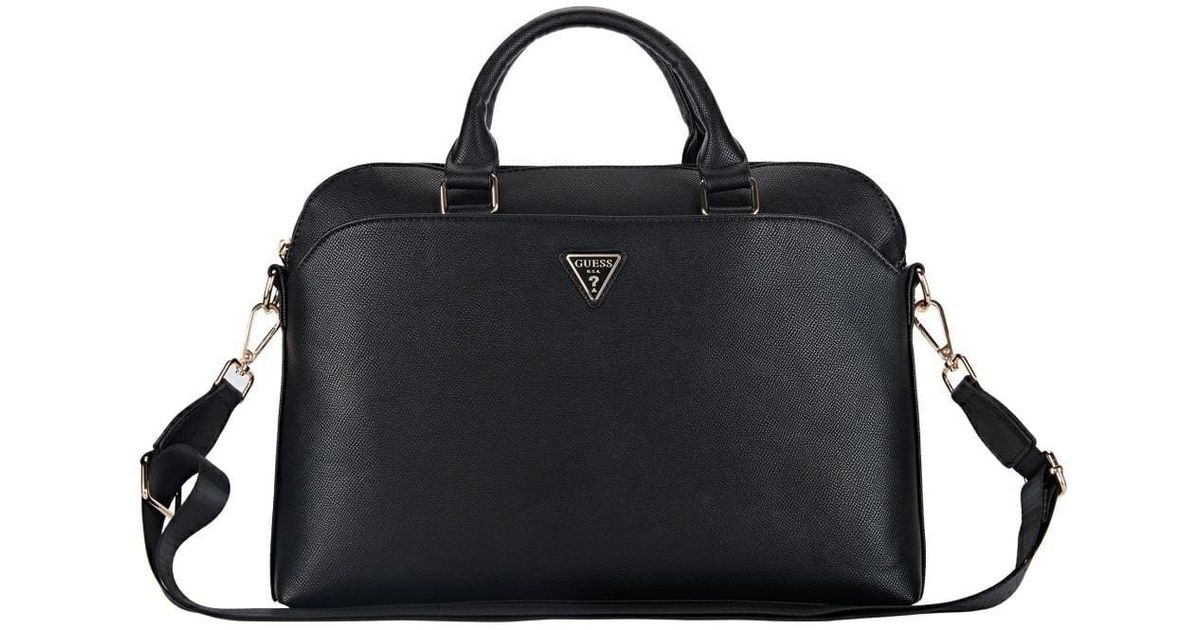 Bag Guess Grained Zipper Pocket Triangle Logo 15" black