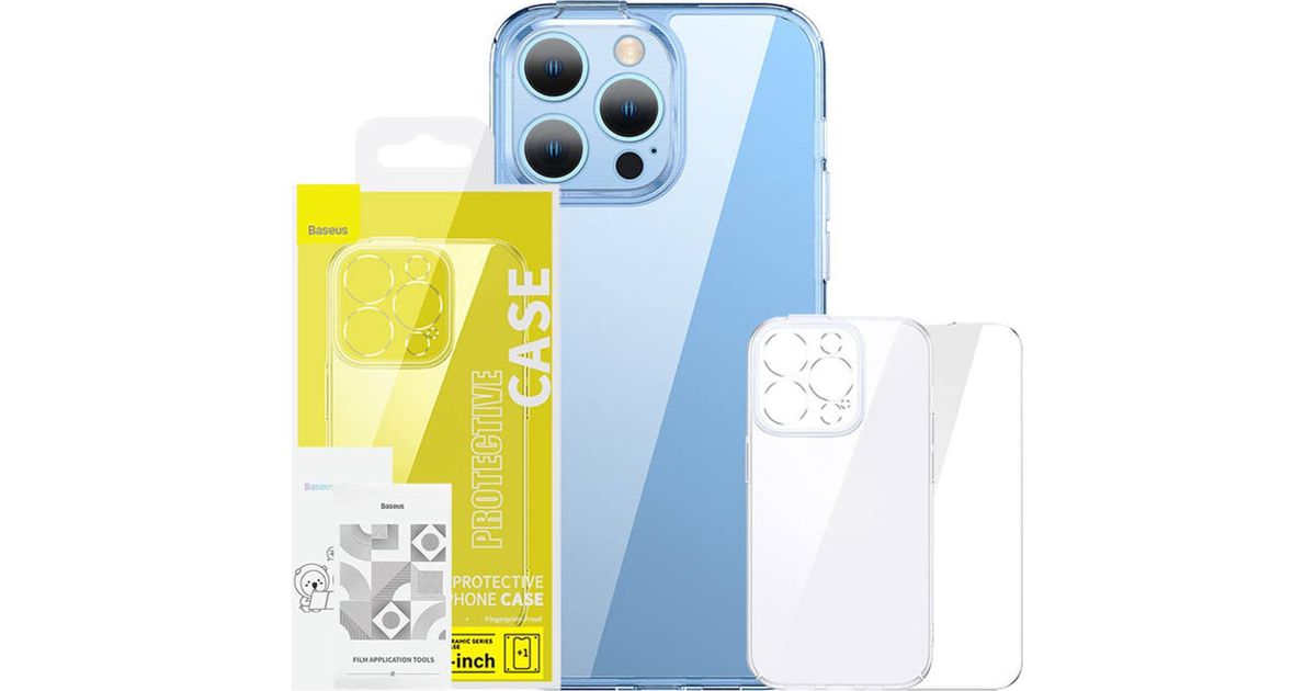 Baseus Baseus SuperCeramic kaitsekomplekt läbipaistev klaasümbris ja karastatud klaas iPhone 14 Plus jaoks