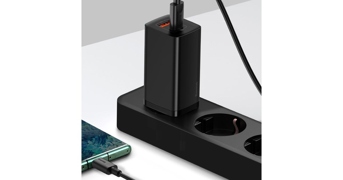 The charger from Baseus features two USB Type-C and USB output ports, so you can charge two devices at the same time. Plus, both ports support fast charging. With CCGAN2L-B01 you will charge not only your Android phone, tablet or iPhone, but also your laptop or game console.