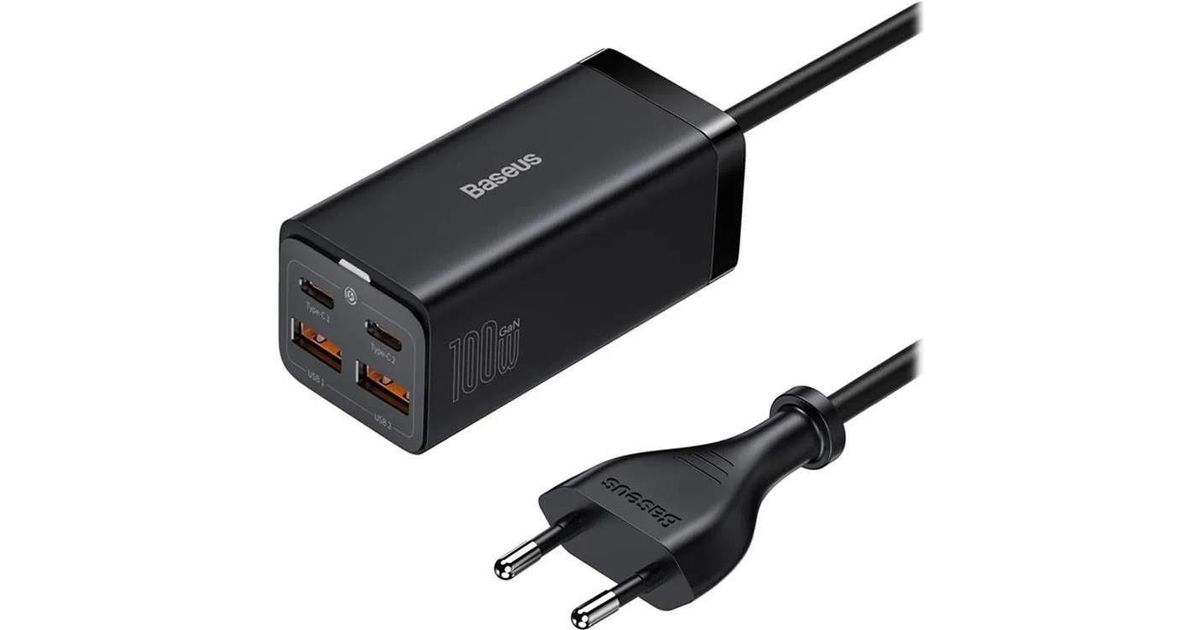 Baseus GaN3 Pro 2xUSB-C + 2xUSB wall charger 100W (black)