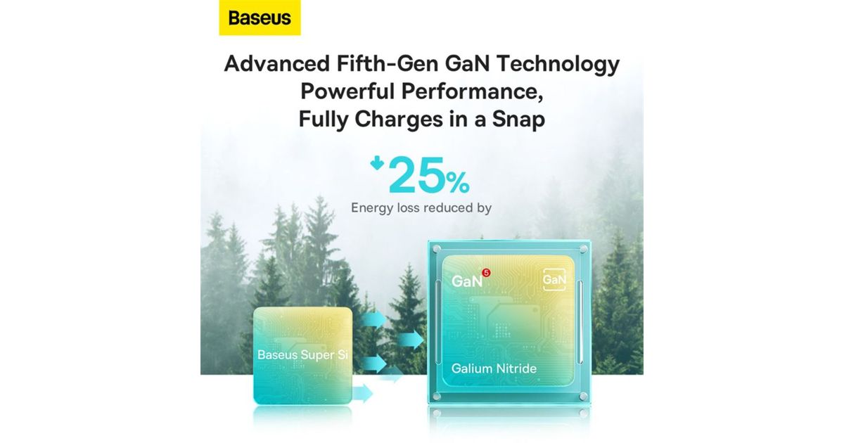 - Technology: GaN for compact design and low heat generation