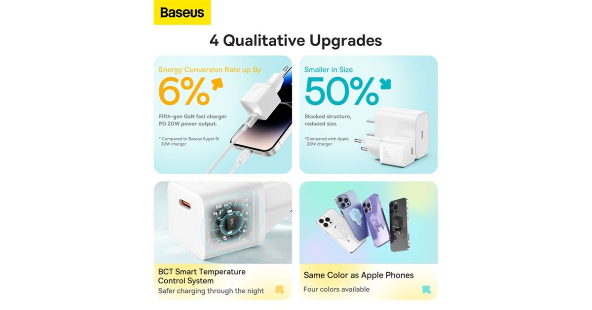 Compact and reliable – the Baseus GaN5 Mini fast charger accompanies you everywhere without taking up a lot of space. Whether at home, in the office or on the go: it ensures that your devices are always supplied with energy. Thanks to modern GaN technology, it offers efficient charging with low heat loss. Intelligent temperature control protects your devices and ensures a safe charging experience.