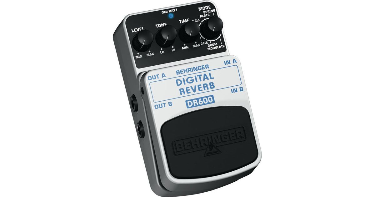 Digital stereo reverb effects pedal for electric guitar that is comparable to stateoftheart studio processors and delivers 24bit highresolution stereo reverbs including Spring, Plate, Hall, Gate, Room and Modulate. It features dedicated Mode, Time, Tone and Level controls for awesome sound shaping, a status LED for effect on/off and battery check and a firstclass electronic On/Off switch for signal integrity in bypass mode. Pedal runs on 9 V battery or the BEHRINGER PSUSB DC power supply (not included). Dimensions: 54 x 70 x 123 mm. Weight: 330 g.