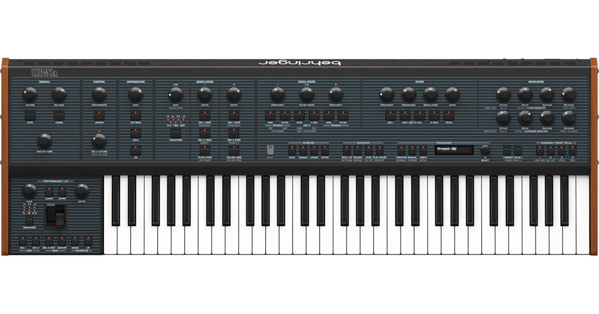 The UB-Xa is more than just a recreation of a classic synthesizer; it’s a modern powerhouse that combines vintage charm with contemporary features.Legacy and Features:The UB-Xa embraces the legacy of the original OB-Xa synthesizer, which contributed to iconic hits in the 80s by artists like Rush’s Geddy Lee, The Police, Prince, Van Halen, and even the Terminator theme composed by Brad Fiedel.It retains the original OB-Xa’s growl and sizzle while adding modern features like velocity and after-touch sensitivity, 512 user program memories, and comprehensive MIDI implementation.Sound Engine:The UB-Xa features 16 voices with 2 VCOs per voice and oscillator sync mode.Its VCOs and VCFs are heavily based on the original 3340 and 3320 chip designs, ensuring authentic sound.You can split the keyboard to layer two different sounds, allowing for massive riffs.Keyboard and Controls:The synth comes with 61 full-sized, semi-weighted keys with polyphonic after-touch and velocity sensitivity.The 8-channel modulation matrix provides extreme flexibility for sound shaping.With 26 rotary controls and various other functions, you have direct control over VCOs, LFOs, ADSR generators, and VCAs.User Program Memories:Save up to 512 user program settings, making it easy to recall your favorite tones.Assign them to pre-set recall switches for quick changes during performances.Vintage Modes:The UB-Xa allows you to select from 8 synthesizer signatures, including OB-Xa, OB-8, and more.These vintage modes capture the essence of classic synths.Dimensions and Weight:Height: 10.9 cmWidth: 104.5 cmLength: 35 cmWeight: 11.7 kg