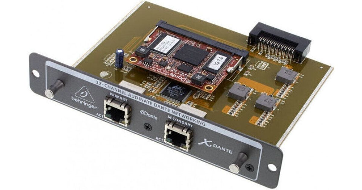 High-performance 32-channel 48 kHz Audinate Dante expansion card for X32. It features bi-directional audio interface for Dante IP networks, high-speed 24-bit signal transmission with sample-accurate synchronization, low latency and full remote control of X32 possible using the integrated Ethernet switch and Audinate Dante Controller application . Allows interfacing with standard 100 MBit/s or Gigabit network infrastructure with DSCP-based QoS. Mixed sample and bit rates can coexist on the same network. Dante Virtual Soundcard allows employing your PC or Mac for IP-based multitrack recording and playback of up to 64 channels. Secondary connection can be configured for seamless redundant audio networking.