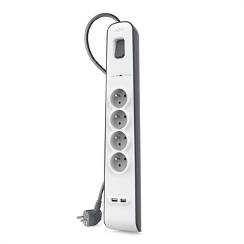 Belkin BSV401CA2M, 525 J, 4 vahelduvvoolu kontakt, Tüüp E, Must, Valge, Tüüp E, 2 m