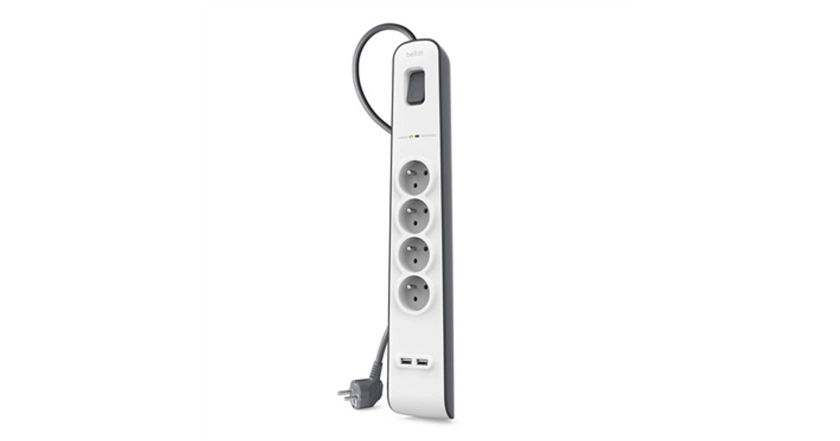 Belkin BSV401CA2M liigpinge kaitsevahend Must, Valge 4 vahelduvvoolu kontakt 2 m