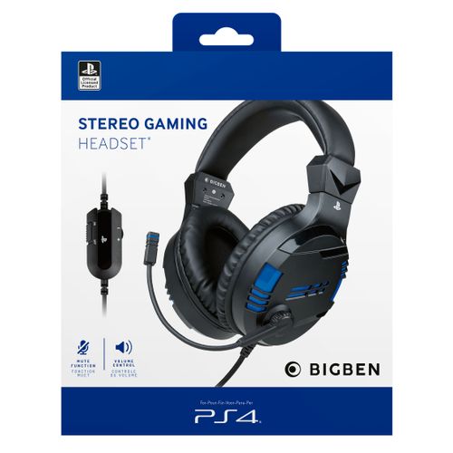 Bigben Interactive PS4OFHEADSETV3, Juhtmega ühendatud, Mängimine, 270 g, Kõrvaklapp, Must, Sinine