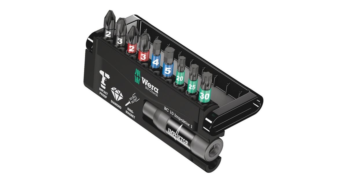 Wera BC 10 Impaktor 1, 10 tk, Kuuskant (inglise mõõdustik), Phillips, Pozidriv, Torx, PH 2, PH 3, PZ 2, PZ 3, T20, T25, T30, 4,5 mm