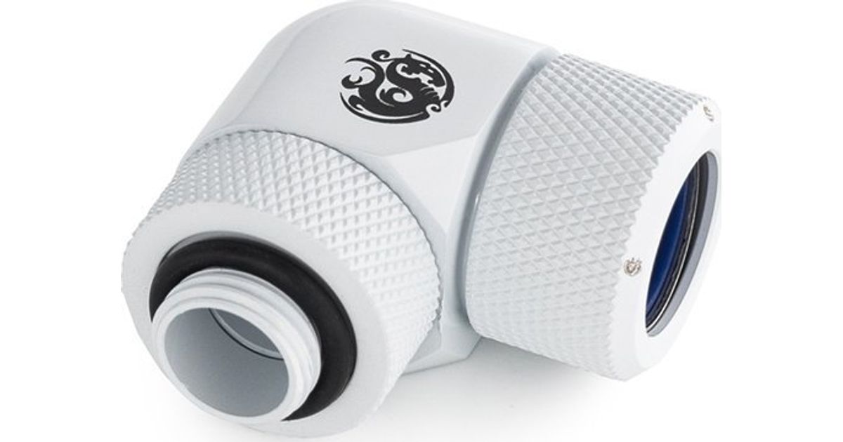 Bitspower Advanced Multi-Link Adapteri ühendus 90 kraadi G1/4 tolli AG kuni 14 mm OD kõva toru – pööratav, valge