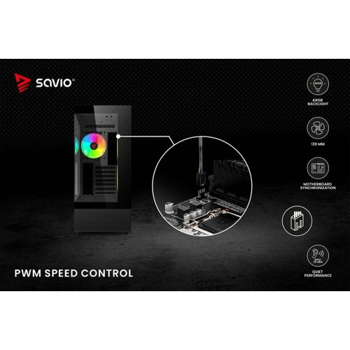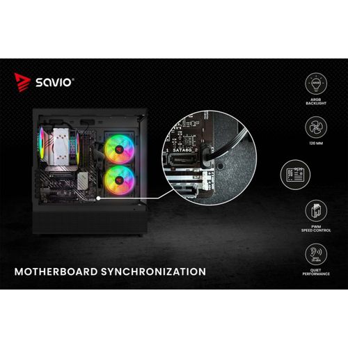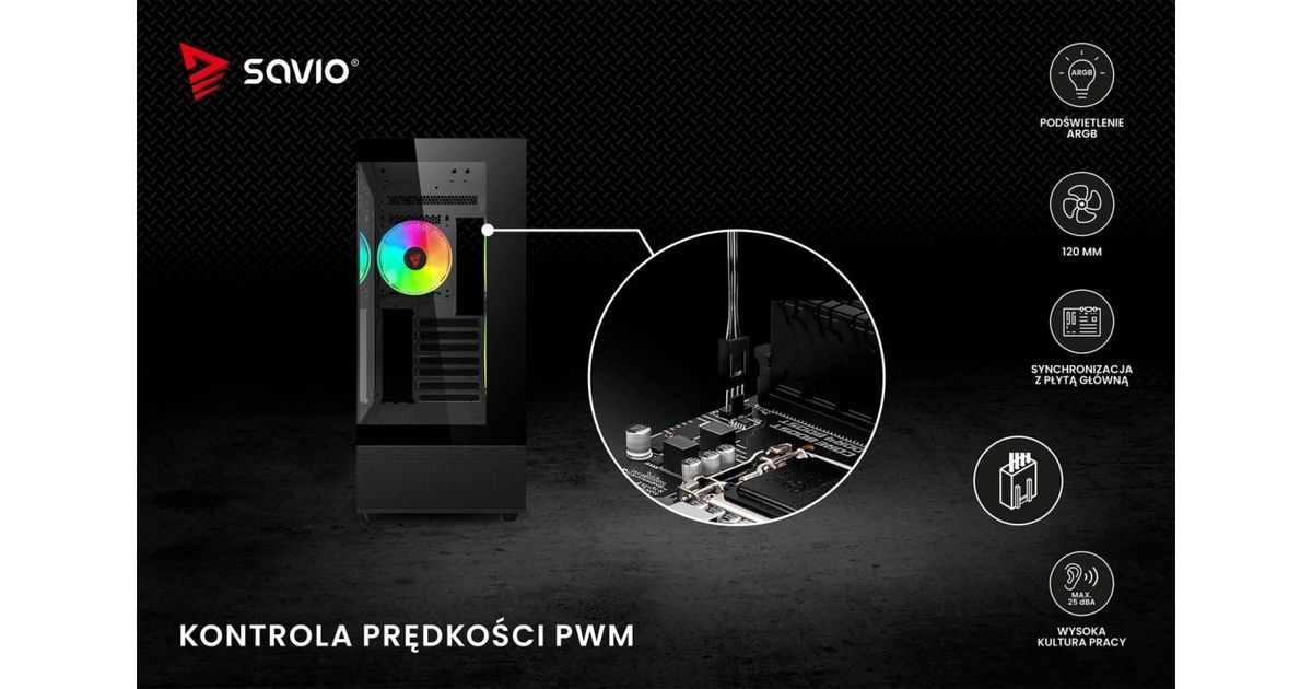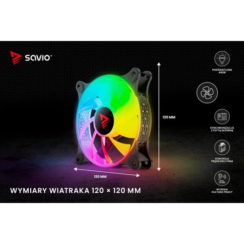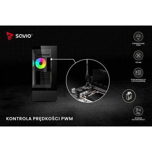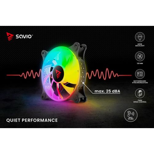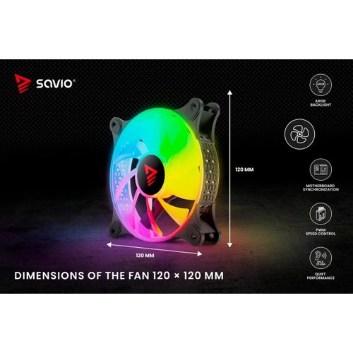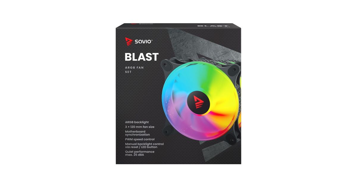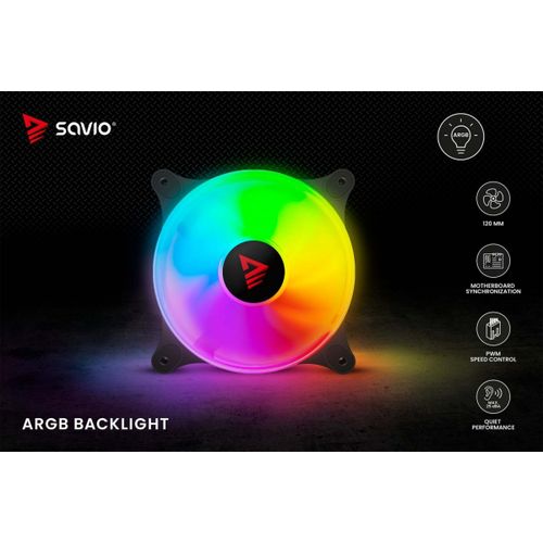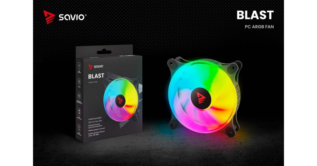 The Savio BLAST fan has a standard size of 120 mm and a maximum speed of up to 1800 RPM. This guarantees very effective cooling of your computer. The unique design of the fan's rim provides amazing lighting effects inside the case.