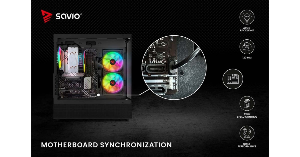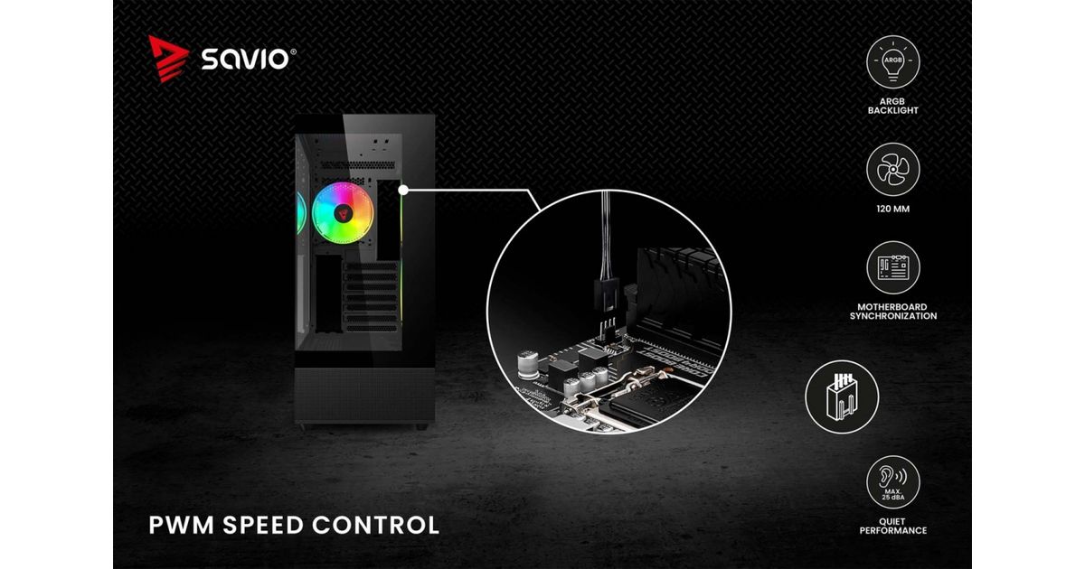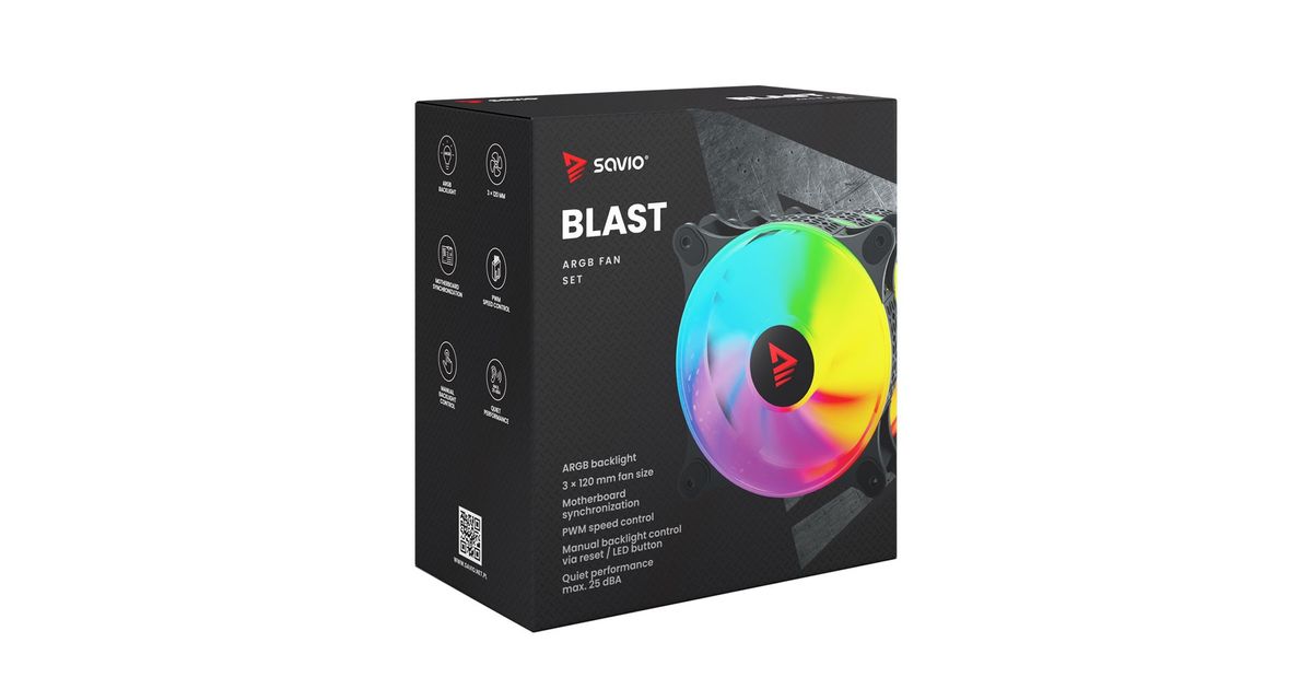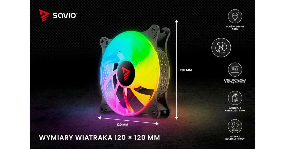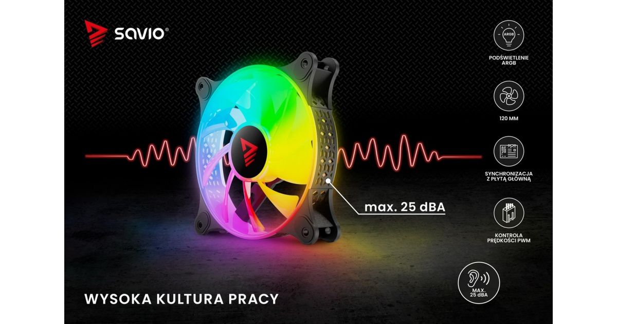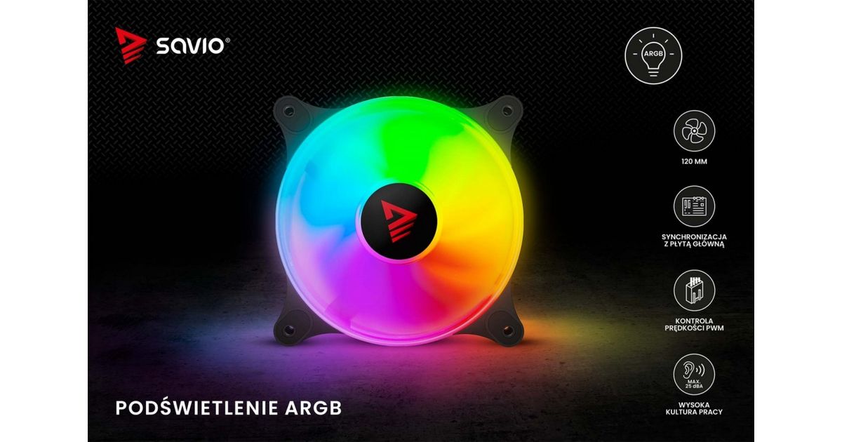 The Savio BLAST fan has a standard size of 120 mm and a maximum speed of up to 1800 RPM. This guarantees very effective cooling of your computer. The unique design of the fan's rim provides amazing lighting effects inside the case.