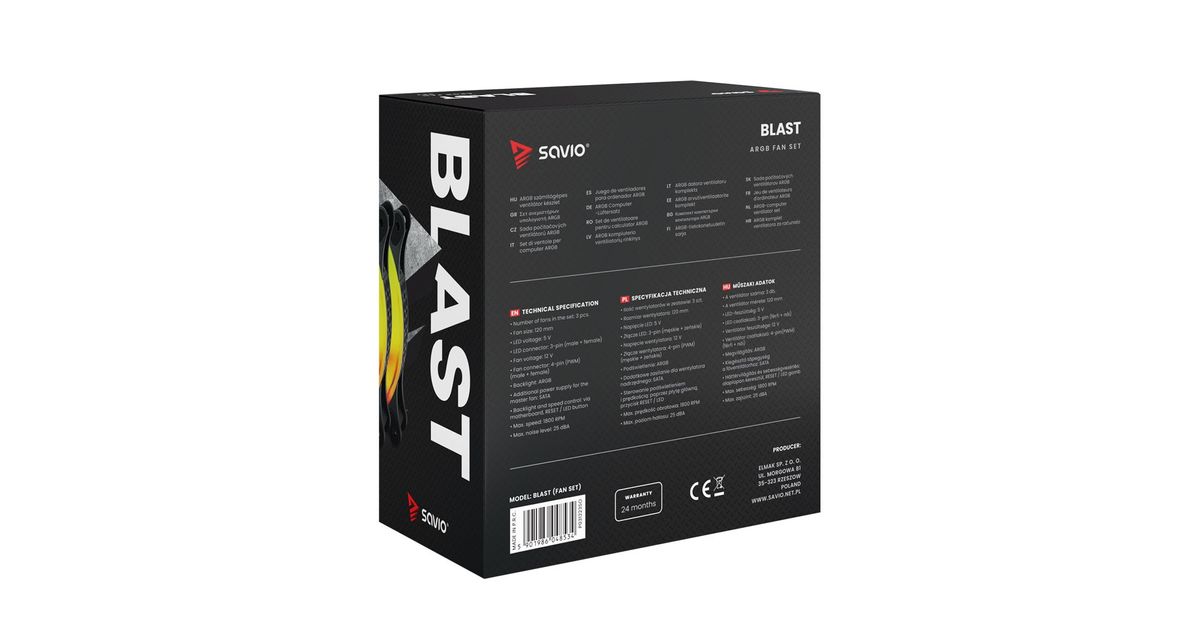 The fan from Savio provides high airflow, thanks to its 9-blade design. The anti-vibration pads used significantly minimize the generated noise and unwanted vibrations. With BLAST you can be sure that the noise level will not exceed 25 dBA. Hassle-free installation is facilitated by the 4 mounting screws included in the kit.