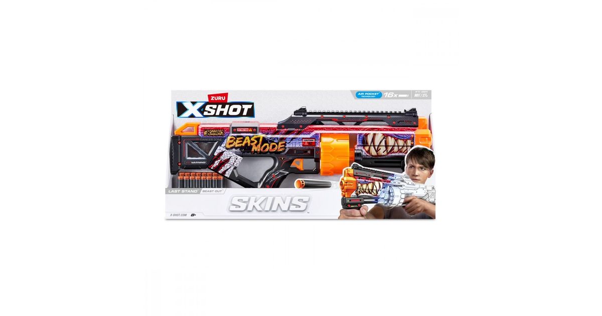 - Choose your Skin: Using a new state of the art printing technology, X-Shot Skins is the first custom designed blaster that brings the in-game experience of skinning your blaster to the battlefield. The X-Shot Skins Last Stand comes in 4 unique skins to select and collect. Choose different, choose X-Shot Skins.