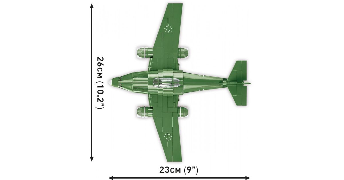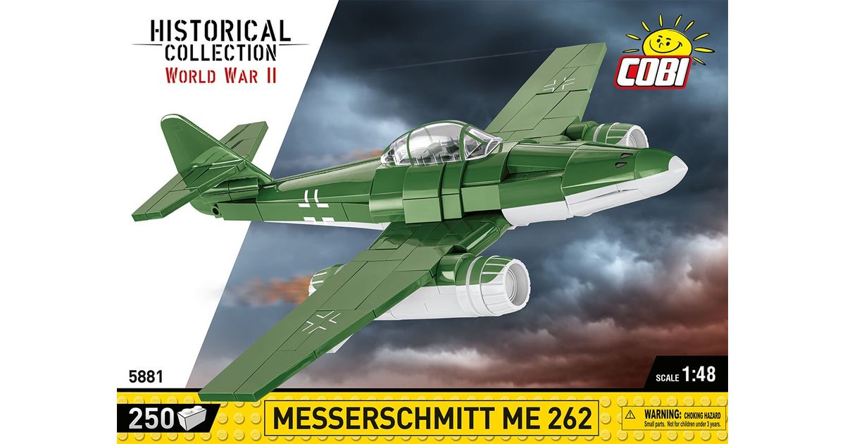 Use 250 COBI construction blocks to build the legendary German jet plane from World War II! The block model features high-quality prints and no stickers. The plane is 23cm long and 26cm in wingspan and fits perfectly into our huge bombers issued in 1:48 scale! Messerschmitt ME 262 is also an easy-to-build model, perfect to start your adventure with COBI construction blocks. This is an aircraft that enthusiasts of aviation, military technology and history will all love. Build history, brick by brick, with COBI.
