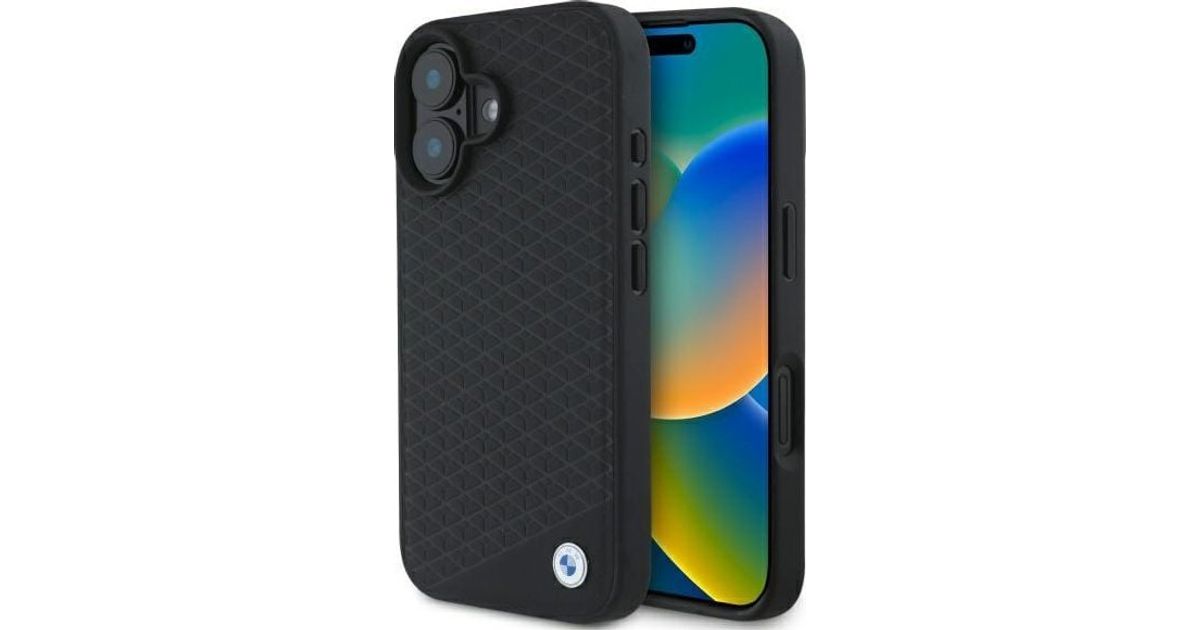 • BMW BMW BMHMP16S23RDDK iPhone 16 6,1-tolline must/must kõvaümbris Silt Nahk Teemantmetallist Logo MagSafe