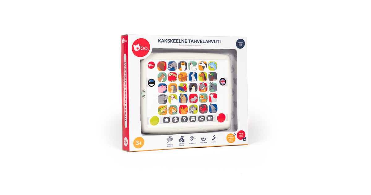 Tutvustame bo. Kakskeelset tahvelarvutit - ideaalne mänguasi millega tutvustada lapsele inglise ja eesti keelt! Sellel tahvelarvutil on 6 lõbusat mängu ja 10 meeldejäävat laulu mõlemas keeles, mis muudab lastel keeleõppe põnevaks. Huvitav õppimisviis, kuidas uurida ja õppida lõbusalt!