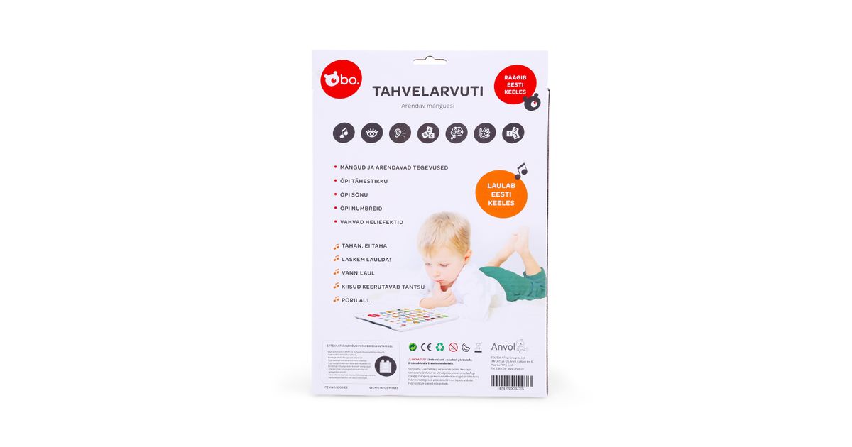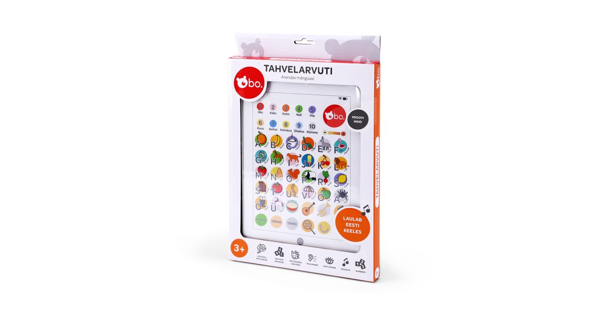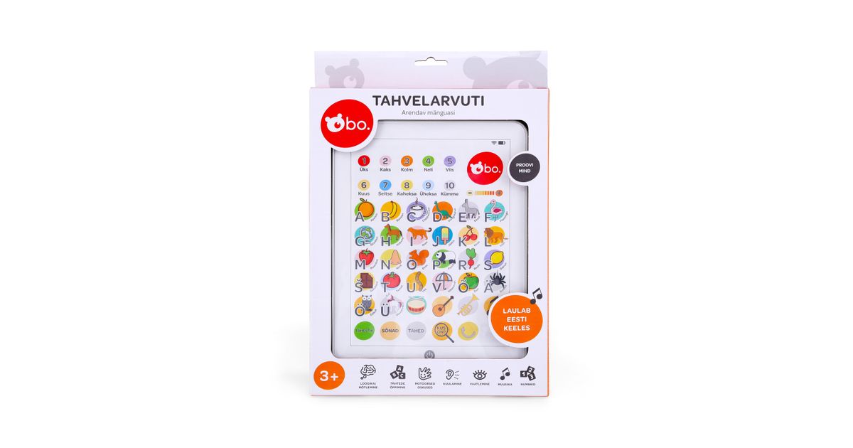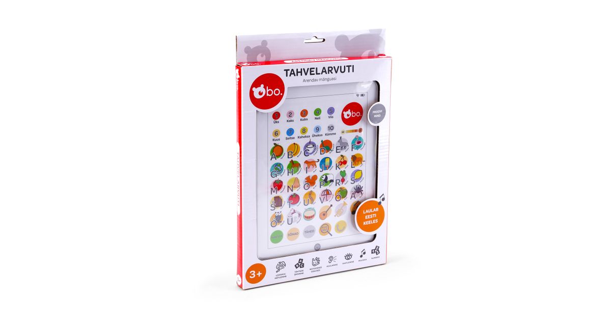 Selle vahva bo. tahvelarvutiga teie laps saab õppida numbreid, tähti ja sõnu! Tahvelarvutis on ka lõbus ja arendav mäng, kus laps peab leidma õiged numbrid, sõnad või tähed! Tahvelarvuti sisaldab ka viite laste lemmiklaulu - "Kiisud Keerutavad Tantsu, "Tahan, Ei Taha", "Laskem Laulda", "Vannilaul" ja "Porilaul"!