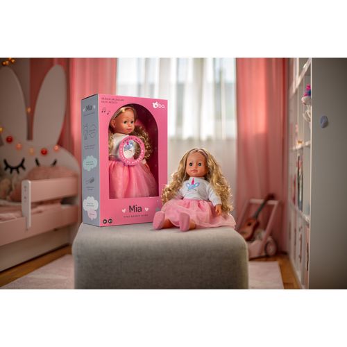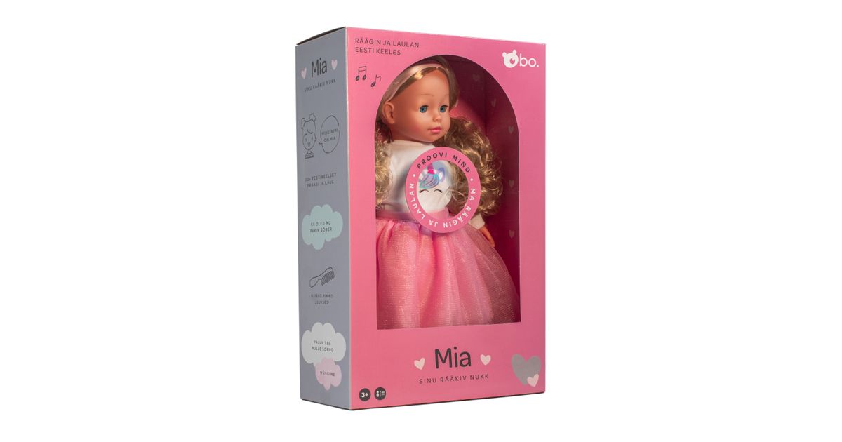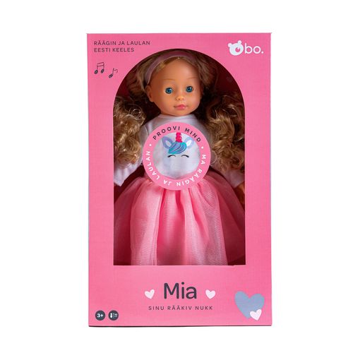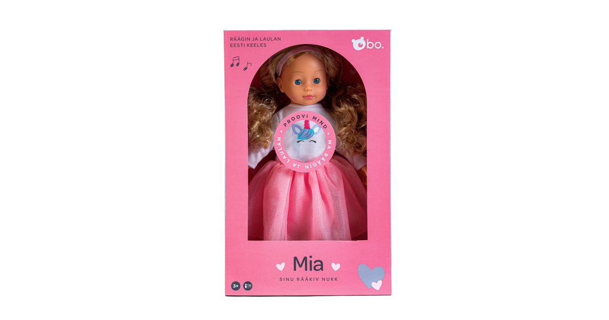 Tere tulemast bo. sõprade armsasse maailma, kus rõõmsad vestlused ja loomingulised mängud ei lõpe kunagi! Rääkiv nukk Mia on sinu uus imeline sõber! Tal on pikad, kammitavad blondid juuksed, millega saab luua palju soenguid ja kaunid sinised silmad mis sulguvad, kui teda selili panna. Mial on seljas stiilne roosa seelik, ükssarviku pildiga valge särk, armsad roosad kingad ja vaata milline ilus peapael on tal juustes! Mia räägib eesti keeles üle 20+ fraasi ja laulab sulle ka ühe laulu. Vajuta ta pehmet kõhtu, et kuulda mida ta sulle räägib! Kammi juukseid ja tee soenguid, kaisuta, mängi ja räägi temaga! Mia on sinu uus rääkiv sõbranna! Nukk on 40 cm pikk.