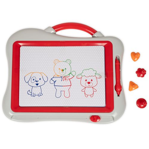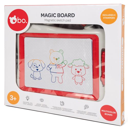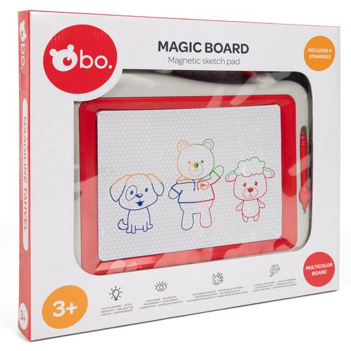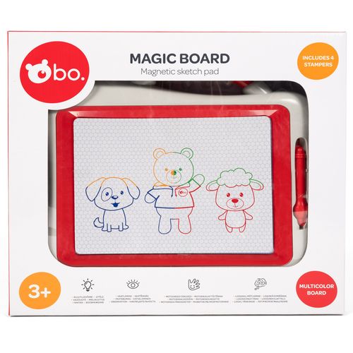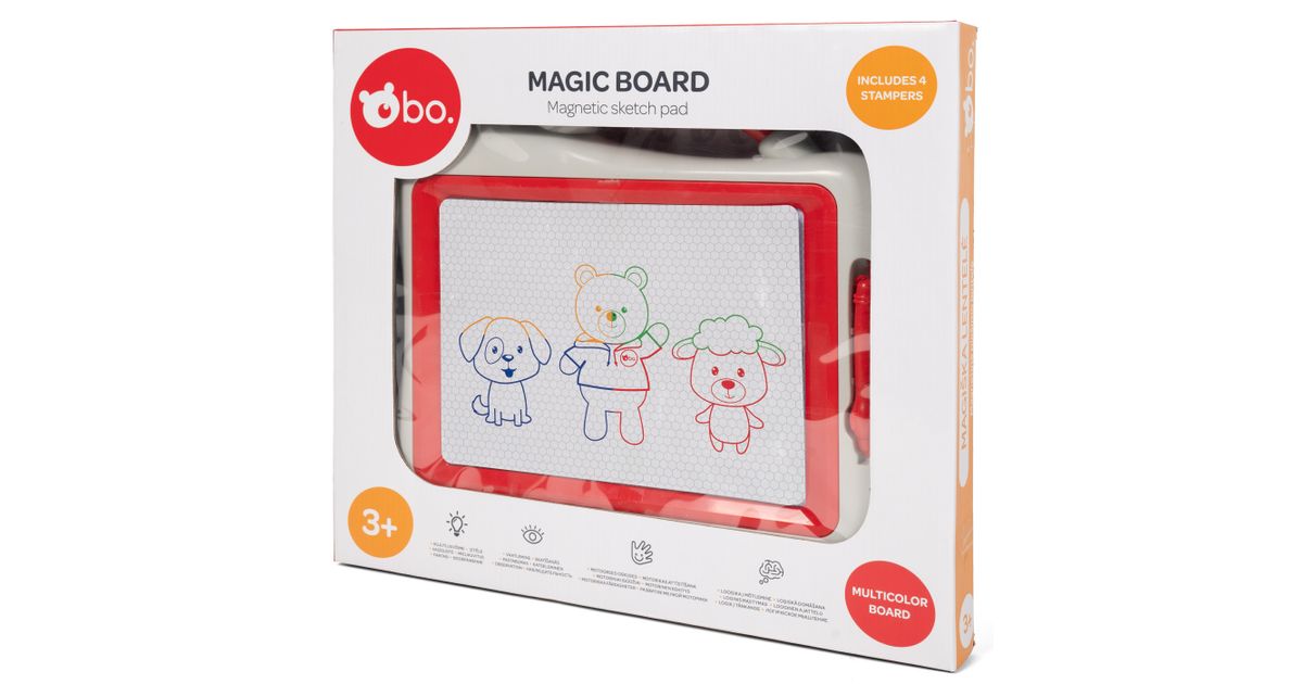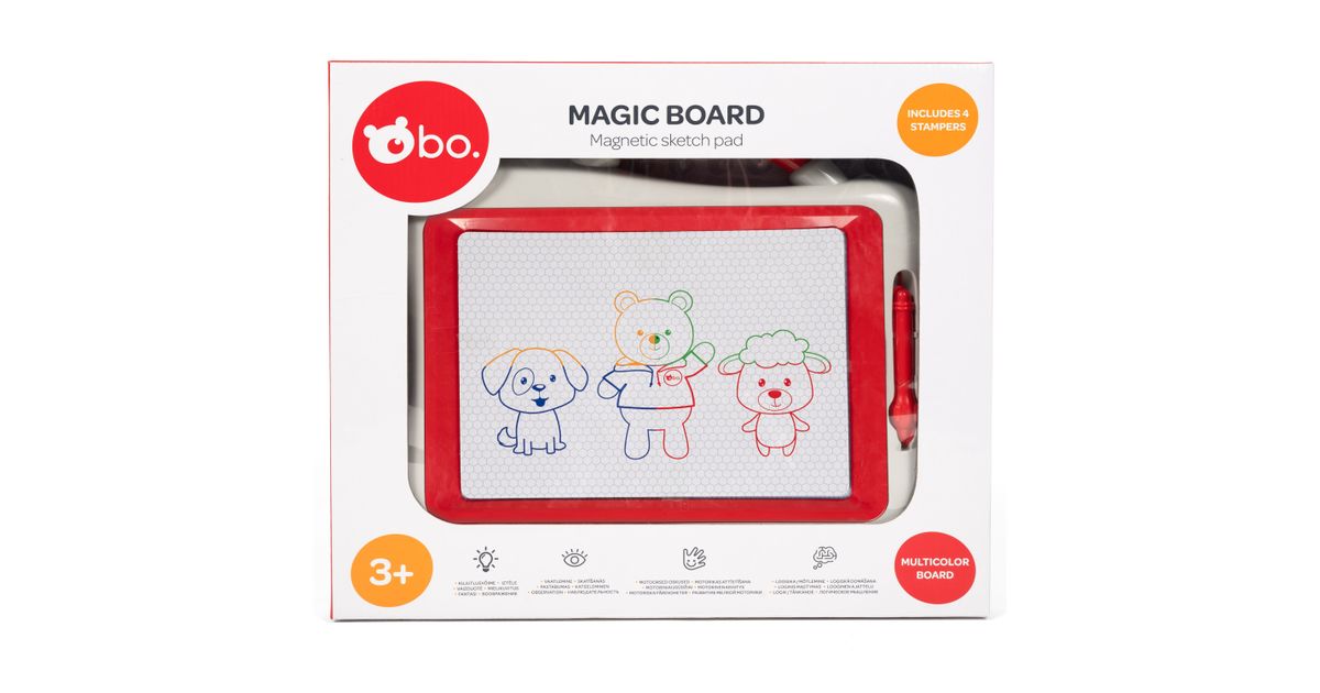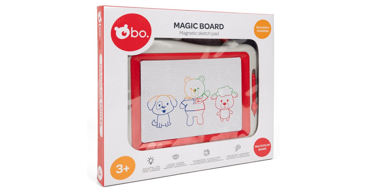 See bo. magnetiline joonistustahvel tutvustab lapsele kunsti maailma! Võta lihtsalt magnetiline pliiats kätte ja alusta joonistamist, joonistatu saad pärast kustutada vaid mõne liigutusega! Neli magnetilist templit ja neli värvitooni muudavad joonistamise veelgi lõbusamaks! Mõõdud: 27X22 cm.