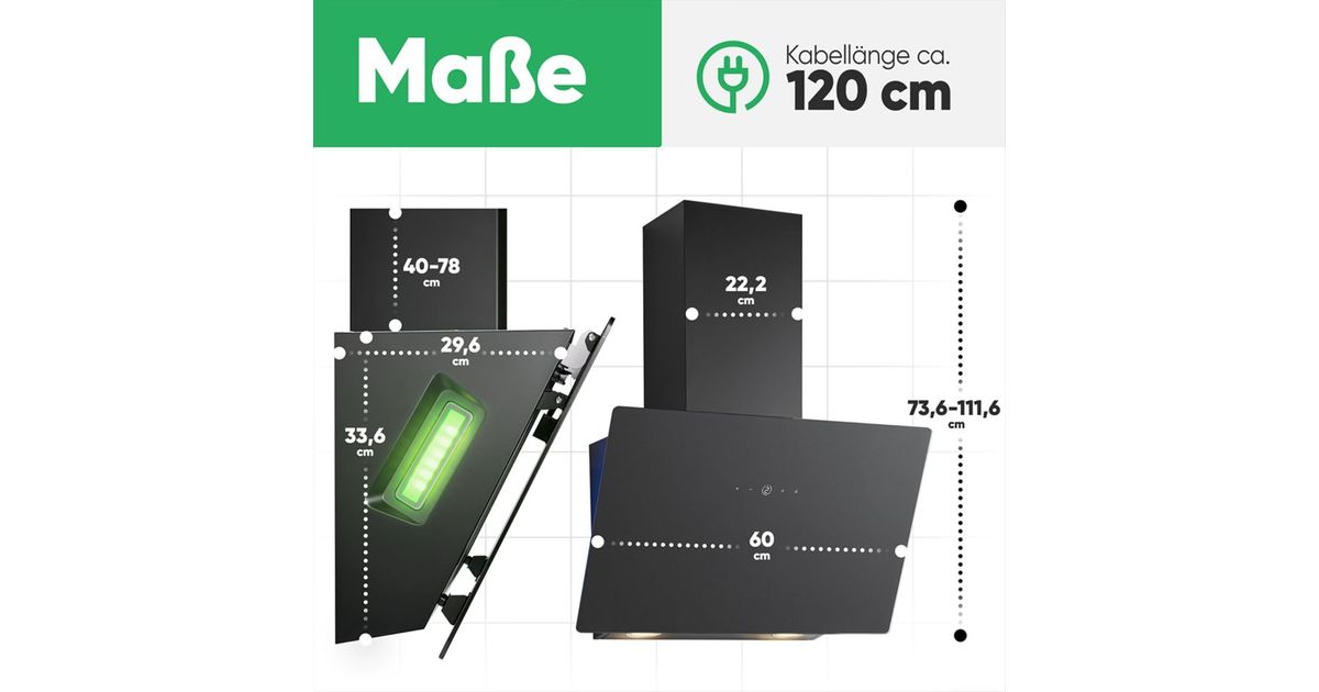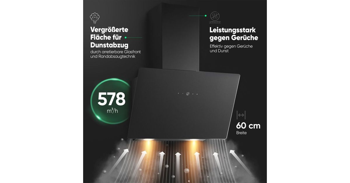 - Powerful - With a maximum exhaust air performance of 578 m³/h, the DU 7611 G cooker bonnet effectively filters odours and vapours out of your kitchen