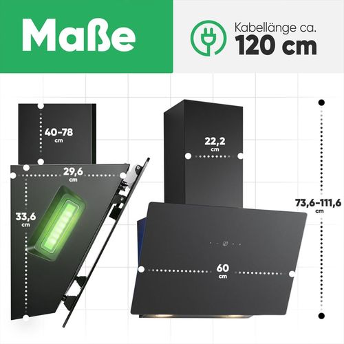 - Simple operation and installation - Thanks to the touch surface, the 60 cm recirculation cooker bonnet is easy to control, while the materials supplied allow for simple installation
