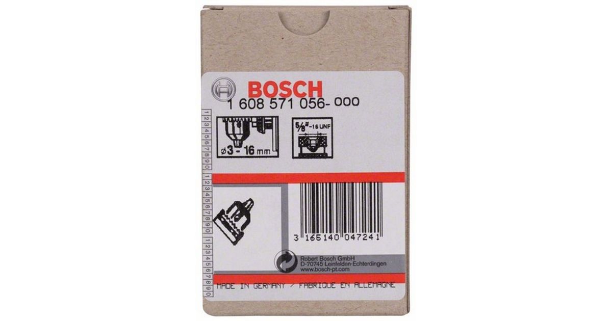 Bosch 1 608 571 056, Võtmega padrun, 3 mm, 1,6 cm, 5/8"-16, Must, Roostevaba teras
