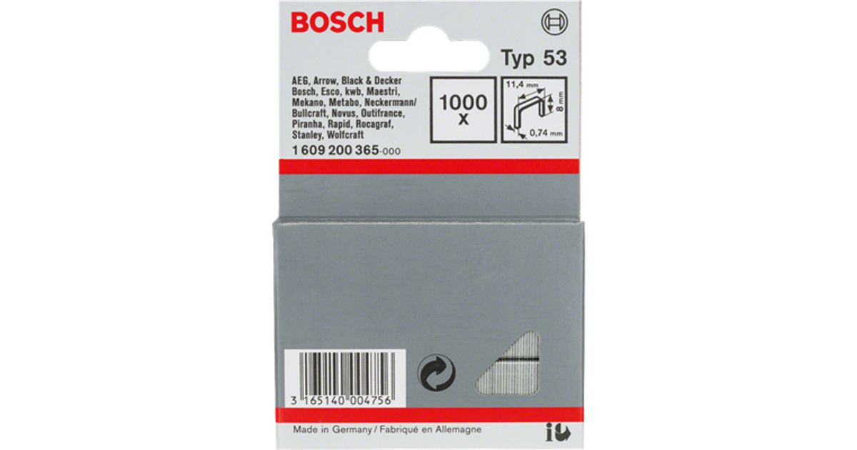 Bosch 1 609 200 366, 1000 klambrit, 11,4 x 0,74 x 10 mm