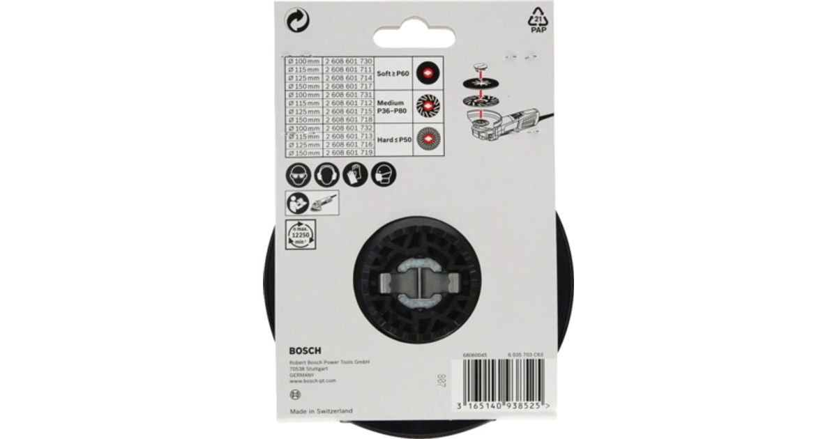 Bosch 2 608 601 716, Tald, Bosch, 12,5 cm, Must, 12250 RPM, Plast