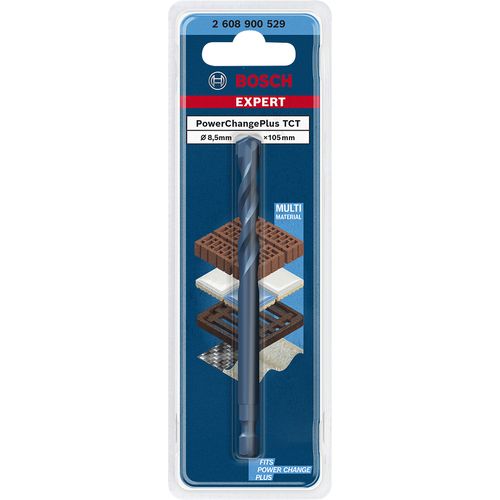 Bosch 2 608 900 529, Puurvasar, Trellpuuriots, Päripäeva pöörlemine, 8,5 mm, 105 mm, Telliskivi, Malm, Plast, Pehme plaat