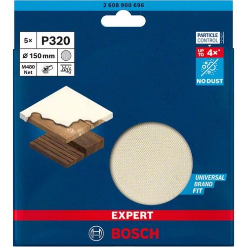 Bosch Accessories EXPERT M480 2608900696 Schleifnetz für Exzenterschleifer ungelocht Körnung num 320 (Ø) 150 mm 5 St. (2608900696)