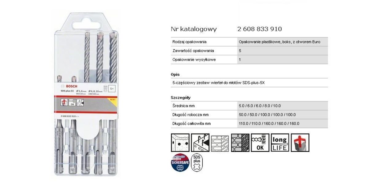 BOSCH DRILL BIT SDS PLUS-5X KPL. 5pcs 5/6/6/8/10x110/160mm ###