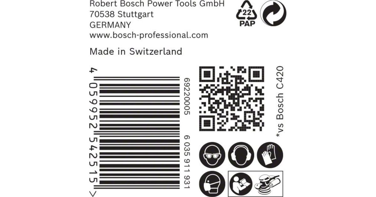 Bosch Expert C470 sandpaper with 8 holes for random orbital sanders, 125 mm, G 180, 5