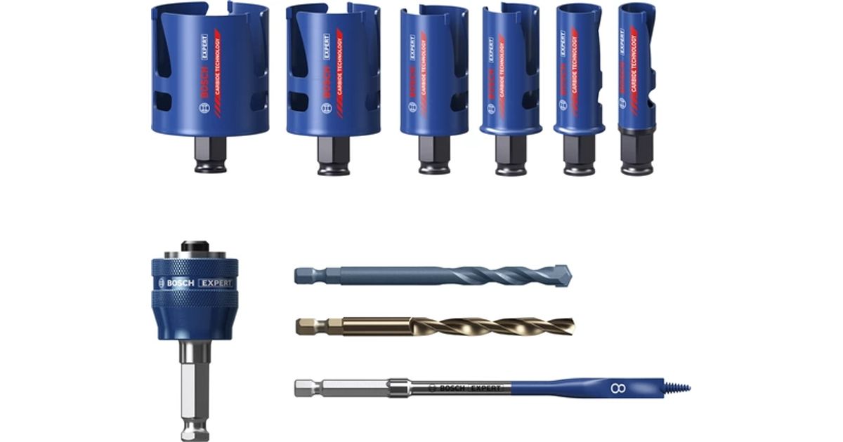 Bosch EXPERT CONSTRUCTION MATERIAL, Komplekt, Trellpuur, Telliskivi, Puitlaastplaat, Plast, Okaspuit, Plaat, Sinine, Kuld, Punane, Roostevaba teras, Wolframkarbiid (TC), 6 cm