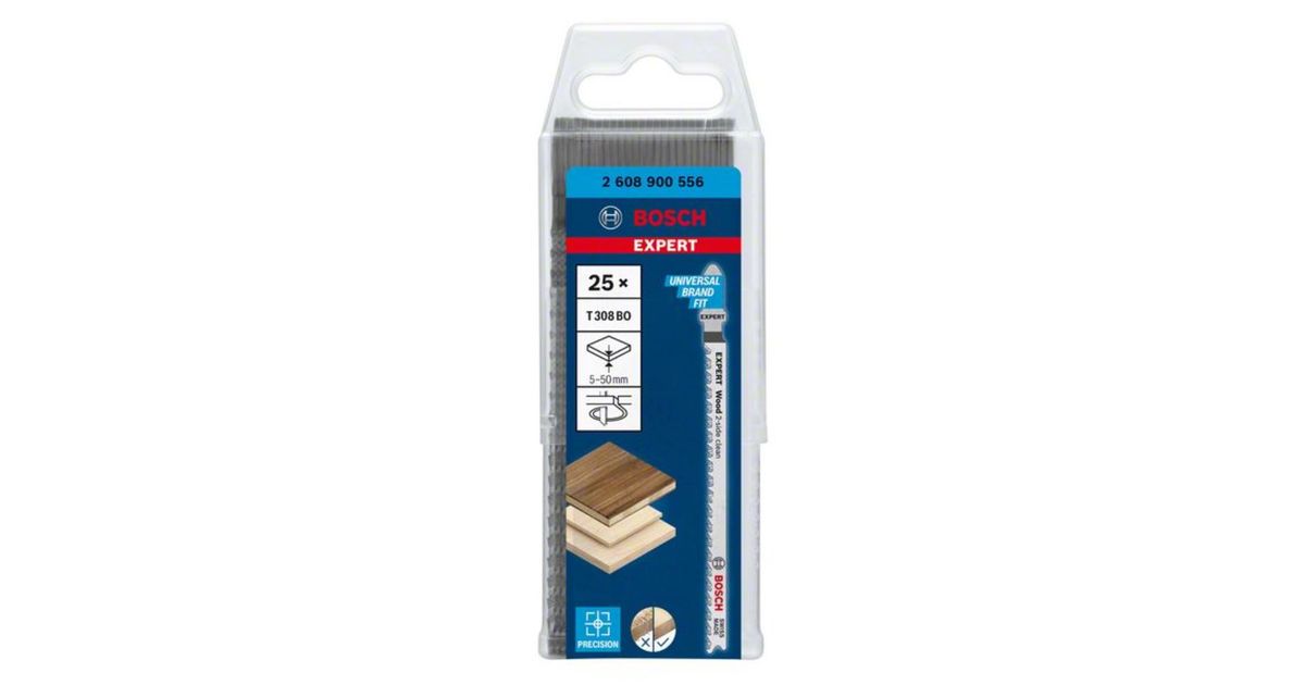 Bosch Expert Wood 2-side clean T 308 BO jigsaw blade, 25 pieces - Tikksaed - Saed - Elektrilised käsitööriistad - Tööriistad ja tarvikud - MT Shop