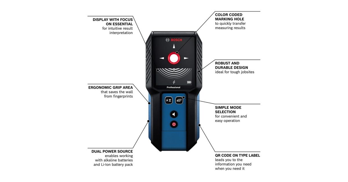 - Provides security by locating metal, current-carrying cables and wooden beams behind the wall