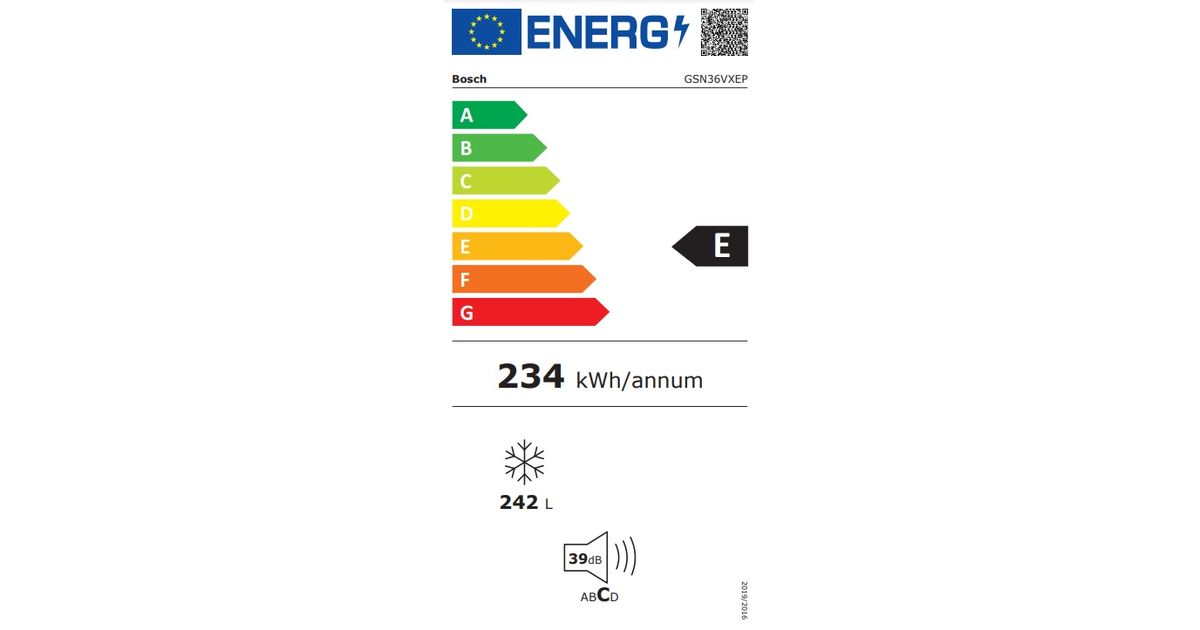 Bosch GSN36VXEP sügavkülmik Püstine sügavkülmik Eraldiseisev 242 l E Must