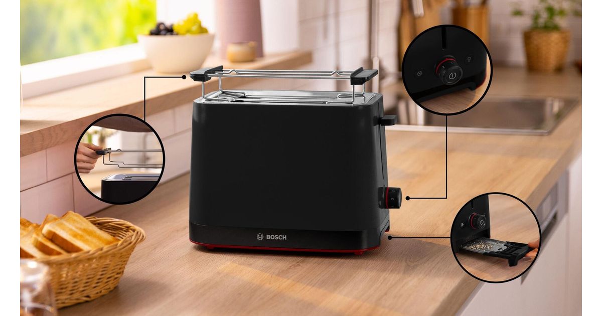 Bosch TAT3M123. Anzahl der Scheiben: 2 Scheibe(n), Produktfarbe: Schwarz, Steuerung: Drehregler. Leistung: 950 W, AC Eingangsspannung: 220 - 240 V, AC Eingangsfrequenz: 50/60 Hz. K