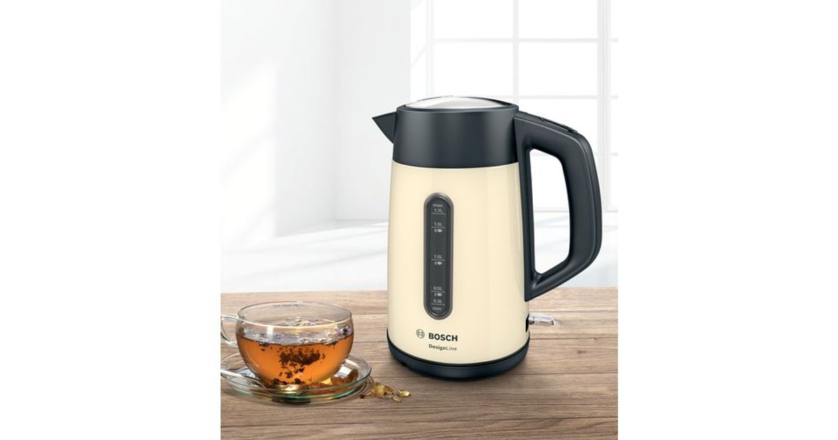 Bosch TWK4P437, 1,7 l, 2400 W, Beež, Must, Roostevaba teras, Veetaseme indikaator, Juhtmevaba
