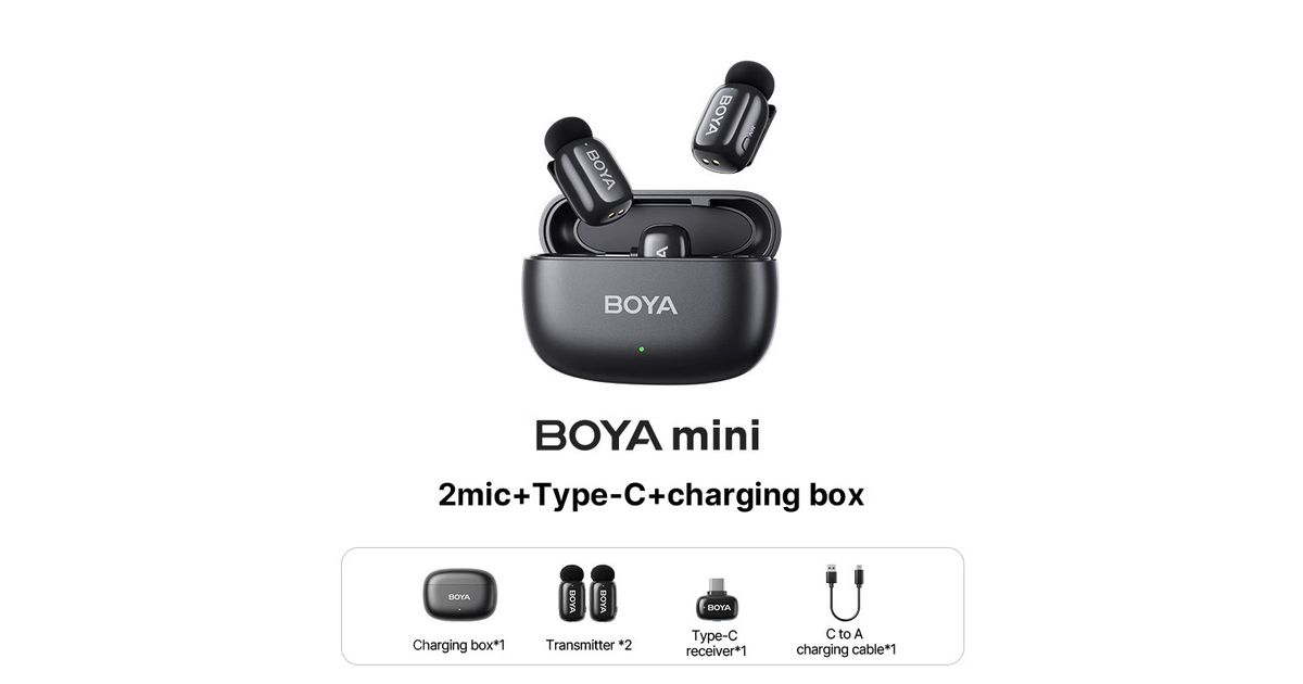 Boya mini-14 komplekt on ideaalne USB-C nutiseadmete ja arvutitega salvestamiseks. Komplekti kuulub kaks saatja-mikrofoni, üks USB-C vastuvõtja ning laadimiskarp, mis tagab kuni 30-tunnise akukestvuse.