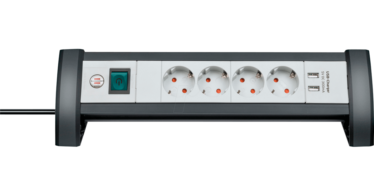 Brennenstuhl 1156250534, 1,8 m, 4 vahelduvvoolu kontakt, Tüüp F, IP20, Must, Valge, 3,1 A