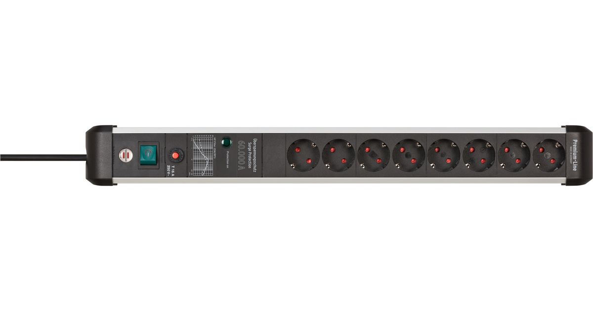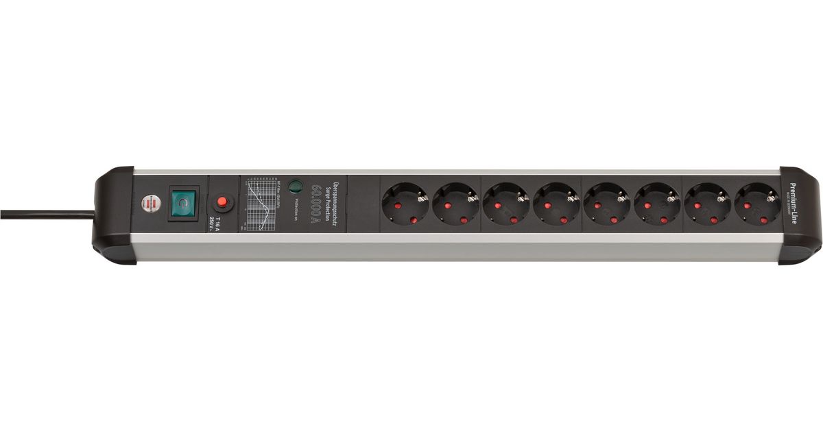 Brennenstuhl 1391010800, 3 m, 8 vahelduvvoolu kontakt, Hoonesisene, Nurga all, IP20, Must, Hõbe