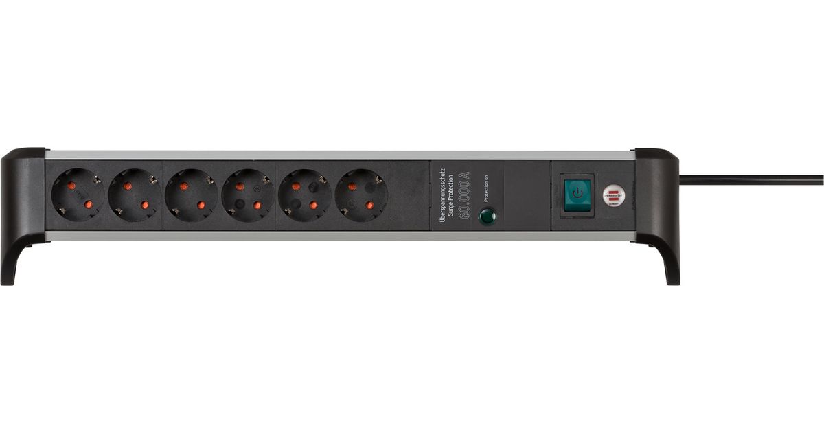 Brennenstuhl 1391020600, 3 m, 6 vahelduvvoolu kontakt, Hoonesisene, Nurga all, IP20, Must, Hõbe