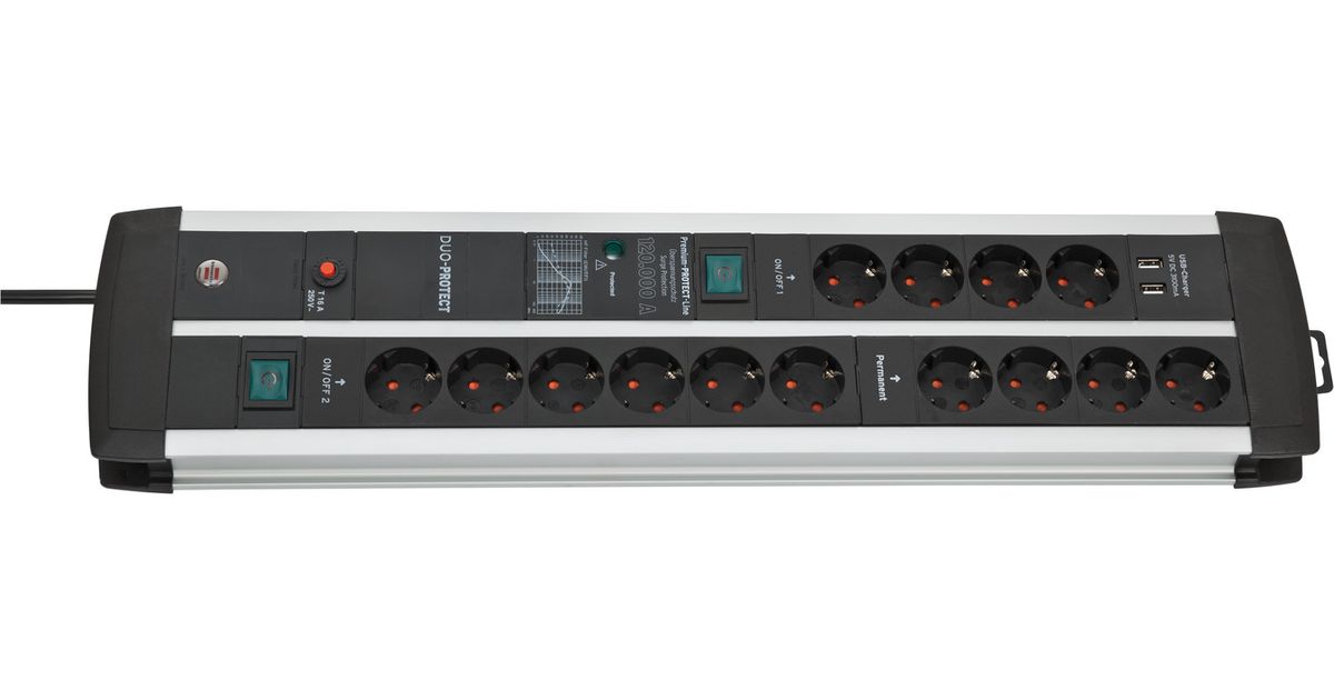 Brennenstuhl 1392000232, 3 m, 14 vahelduvvoolu kontakt, Hoonesisene, Tüüp E/F, IP20, Must, Hõbe