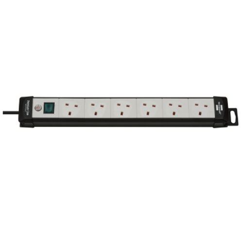 Brennenstuhl 1951563100, 3 m, 6 vahelduvvoolu kontakt, Hoonesisene, IP20, Must, Hall, 90 mm